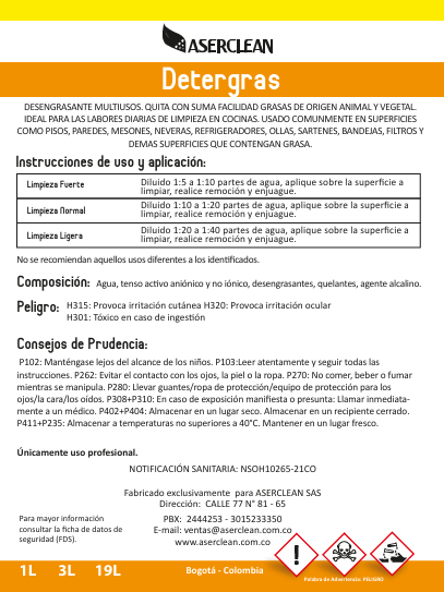 🚀 ¡Desengrasa tus cocinas con Detergras y combínalo con nuestra línea Aserclean para resultados impecables en Colombia! Ordena ahora con envíos rápidos a Bogotá, Medellín o Cali.