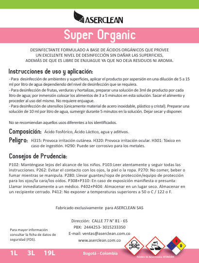 🚀 ¡Desinfecta naturalmente con Super Organic y combínalo con nuestra línea Aserclean para soluciones ecológicas en Colombia! Ordena ahora con envíos rápidos a Bogotá, Medellín o Cali.