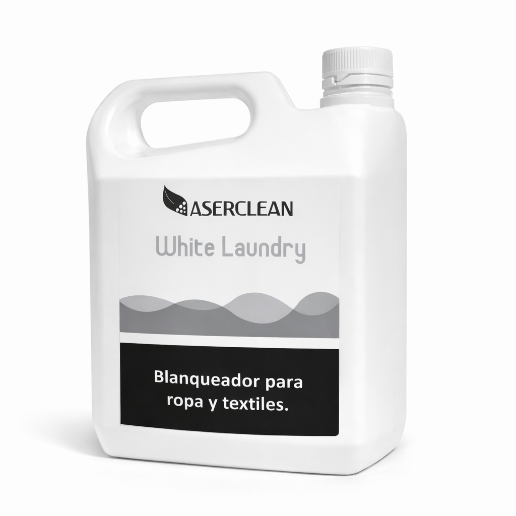 💥 ¡White Laundy de Aserclean es el blanqueador para ropa y textiles que restaura el blanco original eliminando manchas amarillentas, suciedad y decoloración con una fórmula potente pero suave! Esta solución concentrada actúa en lavados, ideal para sábanas, toallas o uniformes blancos en hogares, hoteles o lavanderías en Bogotá y Colombia donde el brillo impecable es esencial.